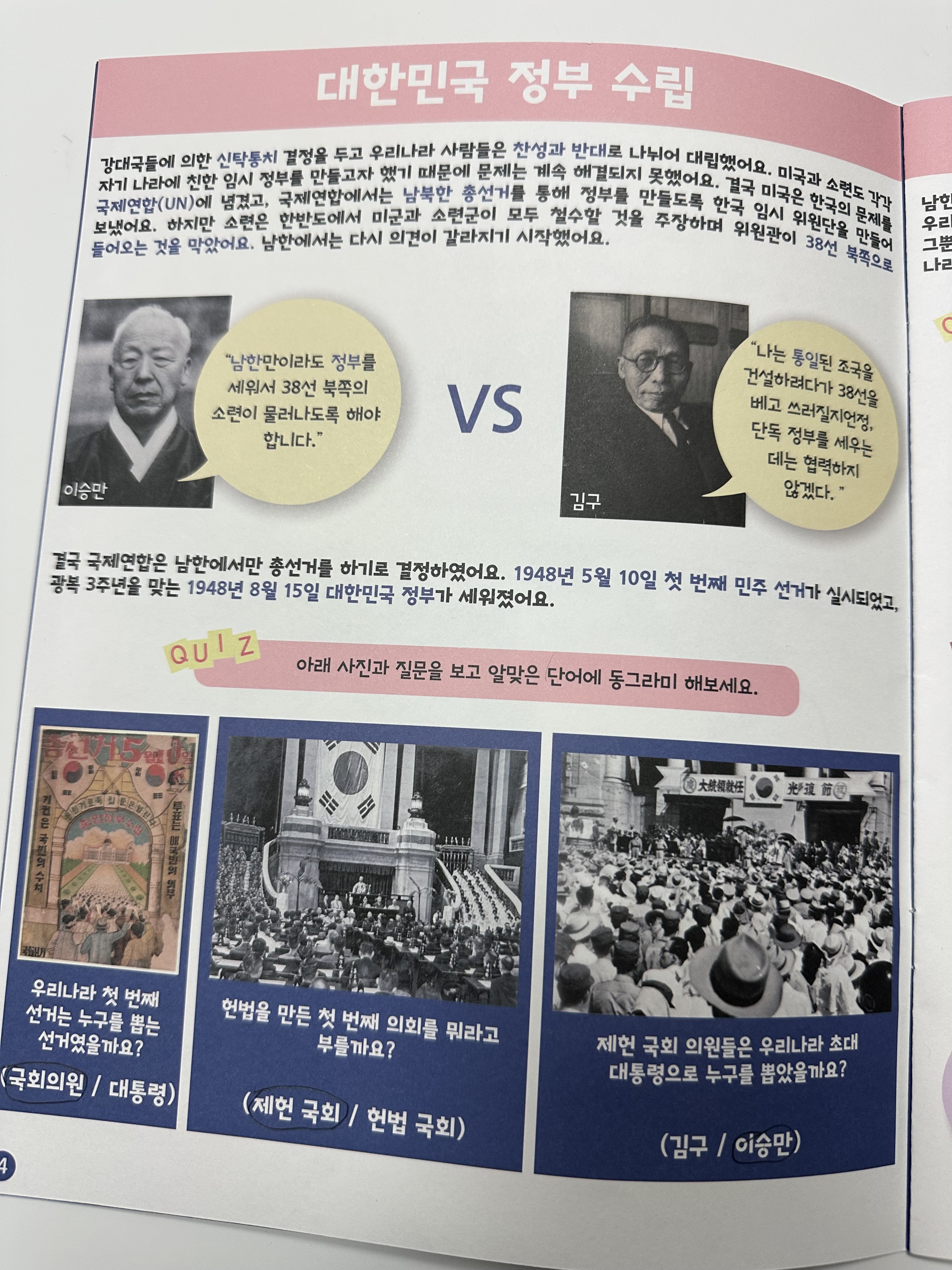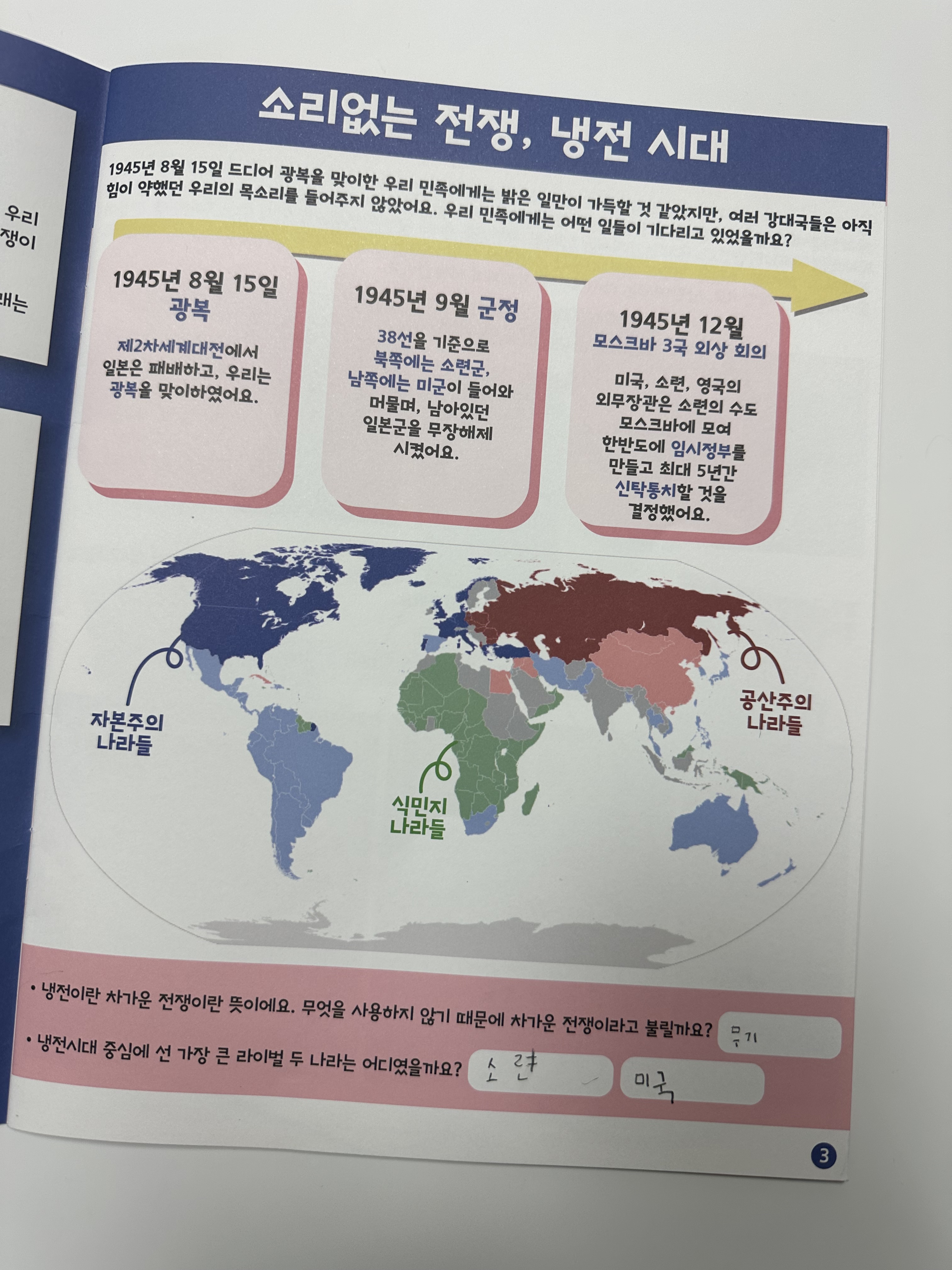 아이가 요즘 위인전을 읽기 시작하면서 전쟁이 왜 일어났고 남과 북이 왜 둘로 나뉘어진건지 등등 질문이 부쩍 늘었었는데 내용이 좀 정리되고 궁금증이 해결되었다고 하더라구요. 7세 아이가 완벽히 이해하기엔 어려운 부분도 있었지만 재밌게 잘 참여하고 온 것 같아요^^